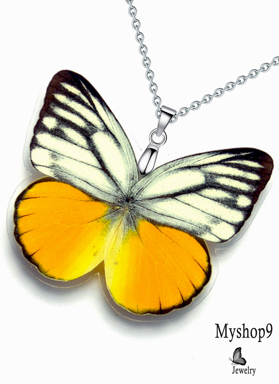 The pendant features a genuine Cepora Aspasia butterfly wing, laminated for durability while preserving its delicate beauty. Its compact size — approximately 1″ x 1.6″ — makes it versatile for everyday wear and a perfect fit for gift-focused inventory. Finished with an 18” stainless steel chain, each necklace is packaged with a branded art card and a resealable eco-friendly pouch — ready for display or resale.